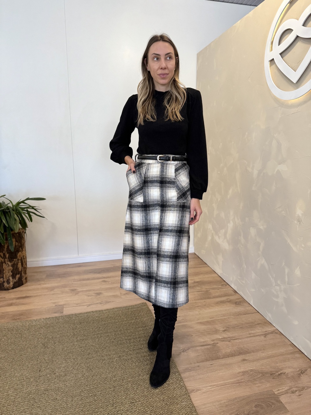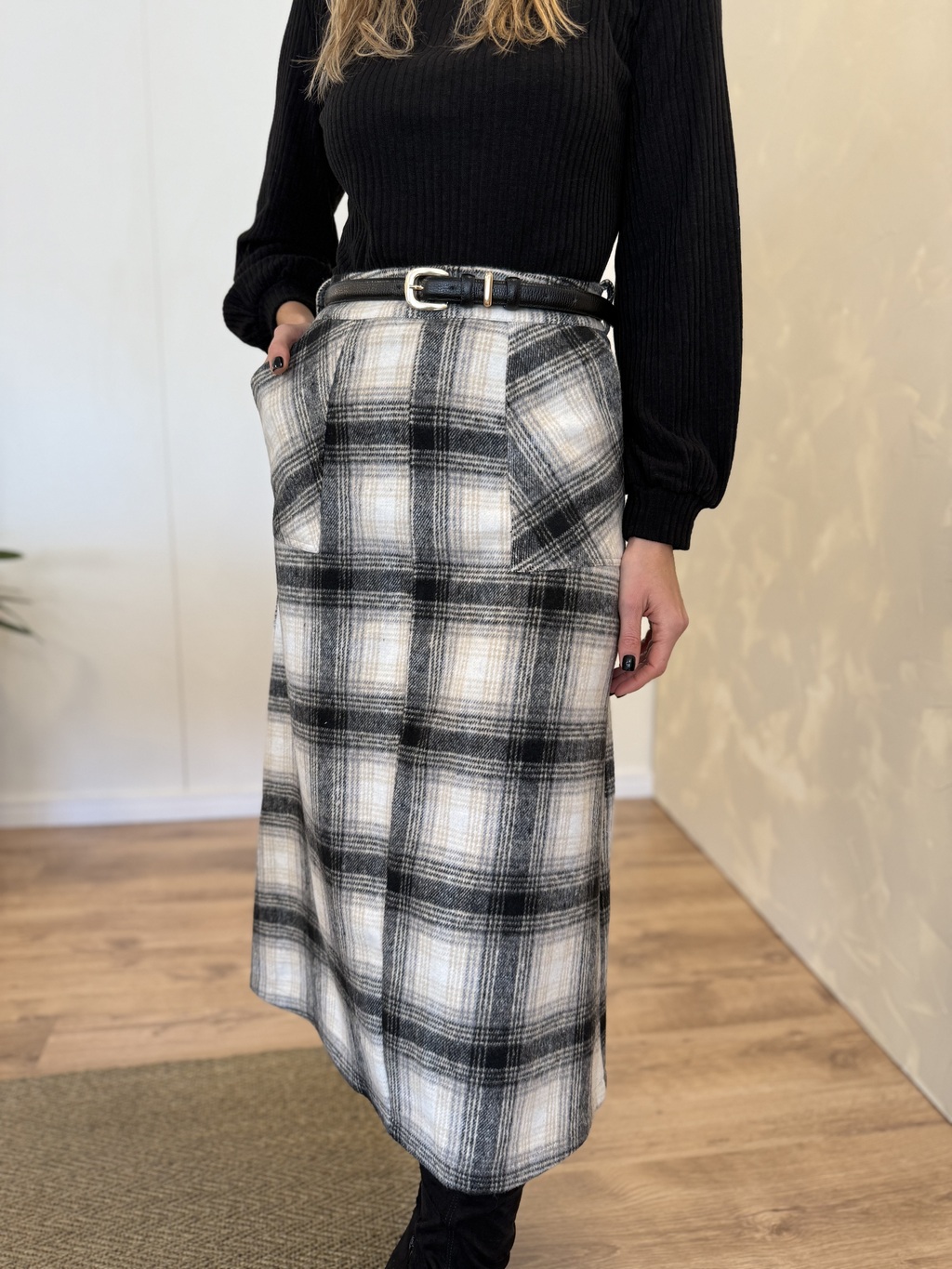Saia Midi com fechamento em zíper.